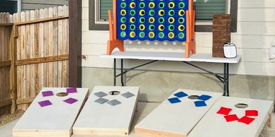 A complete setup for a fun and stress-free event. Includes tables, chairs, two machines, and yard games.